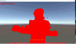 受け取ったフレームを処理し、センサーの前のユーザーを認識していることを確認します。まず、msg 変数を使用して、カメラの前に一人以上たっている場合に「ユーザー検出」、そうでない場合に「ユーザー検出されず」のメッセージを表示するよう設定します。ColorizeUser メソッドで処理されます。「ユーザー検出 / ユーザー検出されず」のメッセージの特性 (色とサイズ) をOnGUI メソッドで設定することもを忘れずに行ってください。